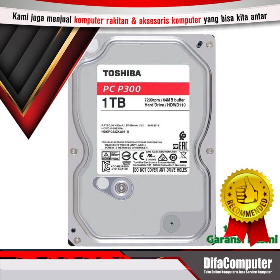 Hardisk Toshiba Internal PC 1Tb Sata 3 3.5 Garansi 2 tahun 7200rpm