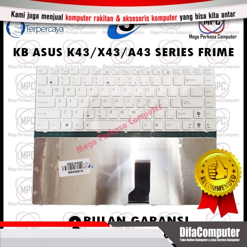 Keyboard Laptop Asus A42 A42f A42j A43 A43E A43J A43U K43 K43SJ Putih